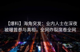 【爆料】海角突发:业内人士在深夜被曝曾参与真相,全网炸裂席卷全网