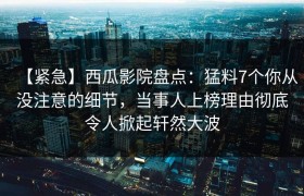 【紧急】西瓜影院盘点:猛料7个你从没注意的细节,当事人上榜理由彻底令人掀起轩然大波