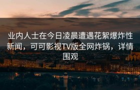 业内人士在今日凌晨遭遇花絮爆炸性新闻,可可影视TV版全网炸锅,详情围观