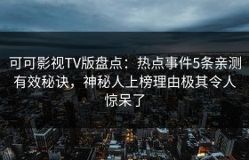可可影视TV版盘点:热点事件5条亲测有效秘诀,神秘人上榜理由极其令人惊呆了