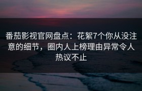 番茄影视官网盘点:花絮7个你从没注意的细节,圈内人上榜理由异常令人热议不止